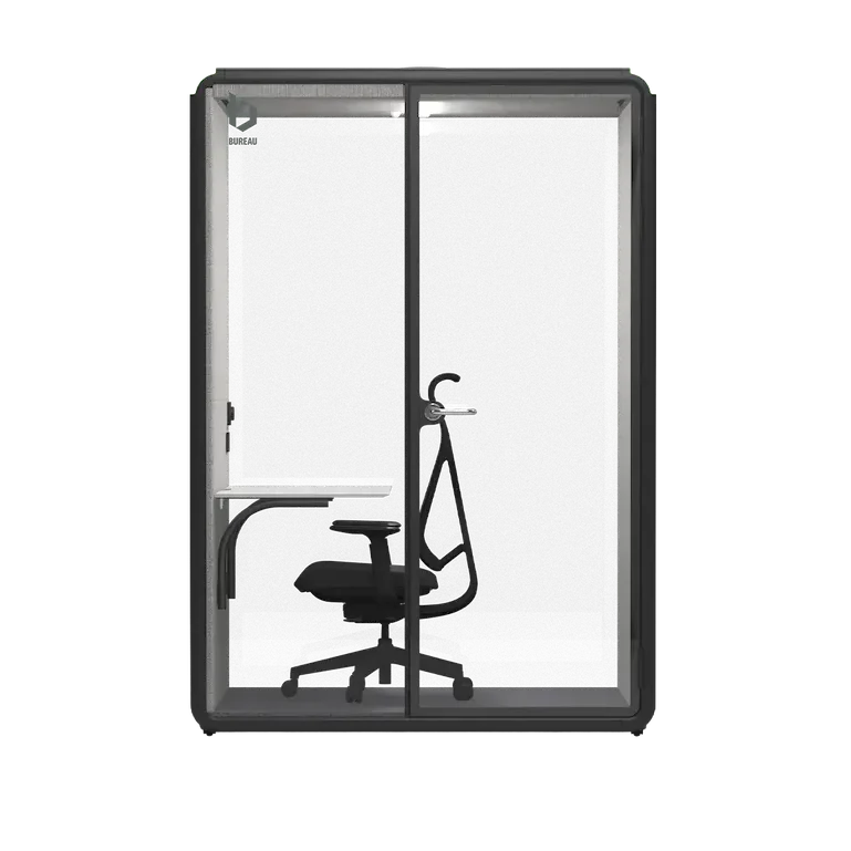 Bureau booths are non-permanent, easy to install, and designed to be relocated as your office needs change, making them a cost-effective alternative to traditional construction. Furniture is included as standard across both models, with no hidden costs for chairs or desks. Whether you need a quiet pod for one person or a full range of booth sizes for your whole team, Bureau has a solution to fit your space and your budget.