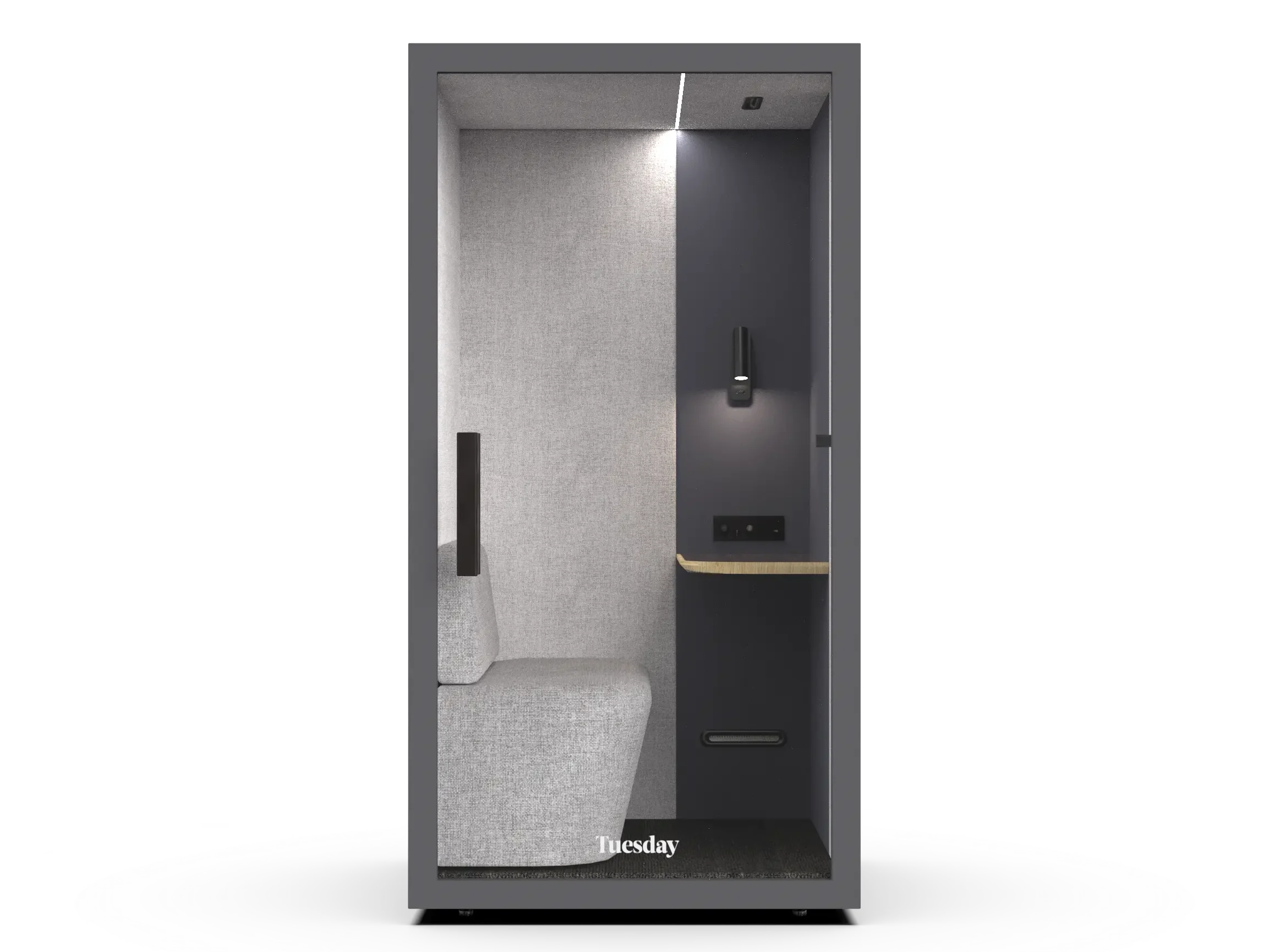 The Bureau Tuesday is the best value 1-person office pod for 2026, delivering strong acoustic performance and a comfortable working environment at the most accessible price point in its class. It is designed to fit into smaller spaces without sacrificing the core features that matter most for focused work. As a Bureau product, the Tuesday is independently certified and backed by the same WELL-licensed health credentials as the rest of the Bureau range.