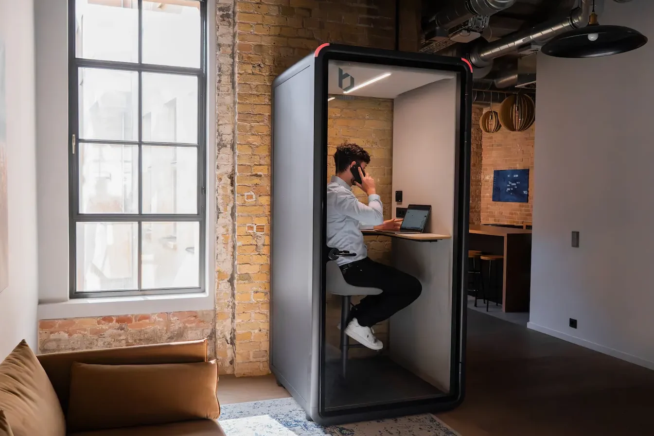 Bureau is also the world’s only soundproof booth company to hold Works with WELL licensing, meaning every Bureau booth is independently verified to support occupant health across air quality, lighting, and acoustic comfort. This is a level of verified health performance that traditional construction rarely achieves without significant additional investment in specialist materials and certification processes.